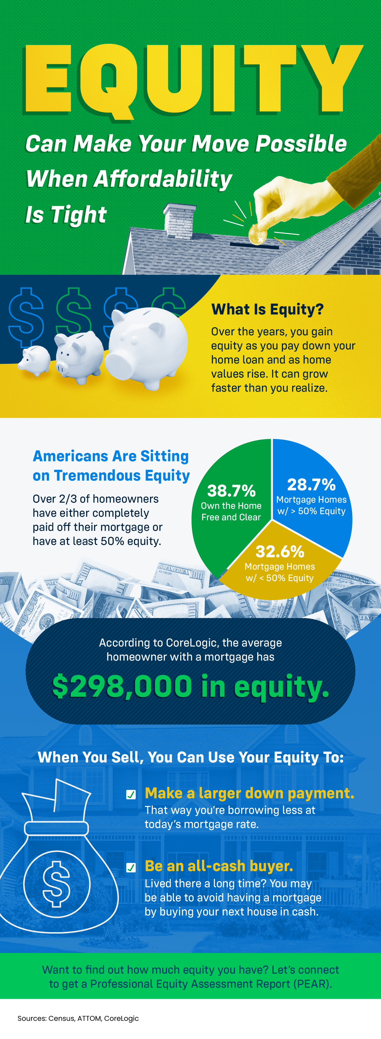 • The typical homeowner has $298,000 in equity. If you want to find out how much you have, let’s connect for a Professional Equity Assessment Report.